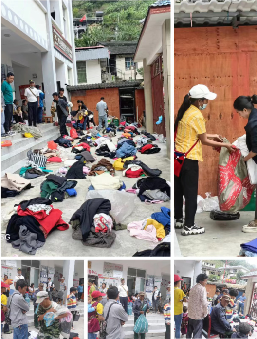 云南省怒江自治州福贡县匹河乡瓦娃村村委会发放衣物现场