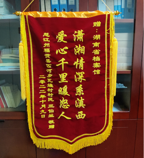 省档案馆收到锦旗“潇湘情深系滇西 爱心千里暖怒人”