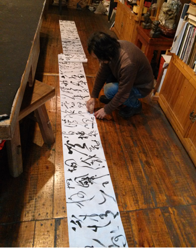 (陈羲明先生即兴创作7米长卷《念奴娇赤壁怀古》 徐军 摄)