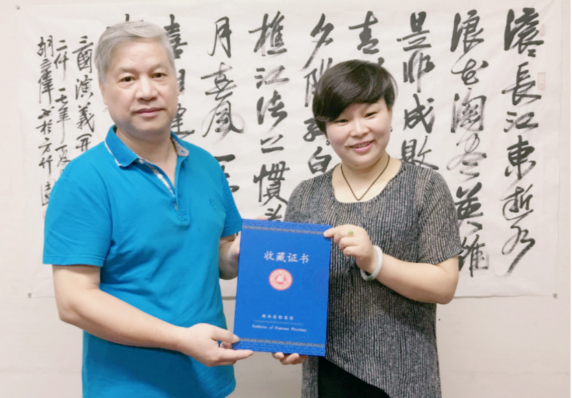 7月10日下午三点,湖南省档案局湖南知名文艺家项目组工作人员如约来到了全国著名画家胡立伟先生的工作室,接收了他的建档作品六尺行书《三国演义开篇词》及档案资料5件。胡立伟先生对省档案局给艺术家建档给予了高度称赞。他从百忙中创作建档作品,反复书写数遍,直至满意为止,并表示以后会不断地把自己满意的作品,如画、篆刻、书法等,交给省档案馆永久保管。