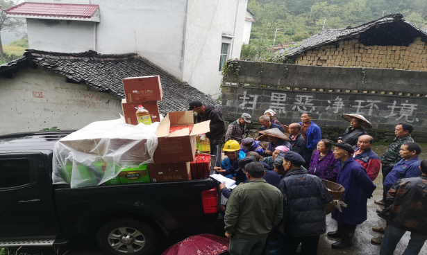 湖南省档案馆驻村工作队为村民分组(自然寨)发放慰问物资。
