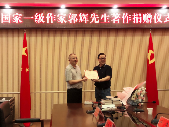 近日,国家一级作家郭辉将《美人窝风情》、《吮吸爱的芬芳》、《永远的乡土》等个人著作共15册捐赠给益阳市档案馆。党组书记、馆长丁希范代表市档案馆接受捐赠。