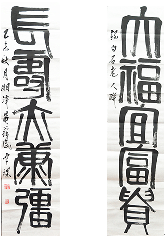 黄苏民先生书法篆刻二极并蓄,尤以篆书见长,其篆书以细柔常颖书经尺大字特见功夫。风格法齐白石,篆书楷意,风标高举,出古入新,幻出奇姿,极具感染力和冲击力。