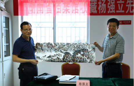 6月18日上午,省档案馆举行了收藏杨强立先生作品仪式。省档案馆党组成员、副馆长蔡振武、罗碧野出席仪式。
