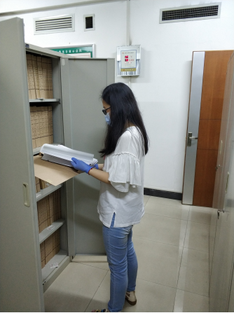 省档案馆技术人员深入省直单位档案室库房进行实地调查。技术人员携带便携式空气质量检测设备和微生物采样设备分别检测档案库房空气中菌落总数、总挥发性有机物、二氧化氮、二氧化硫等环境空气质量指标,抽样检查检测档案及档案盒的虫蛀霉变情况和纸张酸碱度;在现场指导如何有效运用温湿度控制设备、杀虫灭菌设备、防霉防虫药物;积极宣传相关档案行业标准和档案从业人员健康防护知识;在馆微生物实验室分析采集样品后,综合测试数据和调查情况形成书面反馈意见。